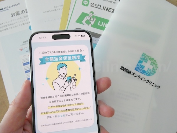 AGAクーポン利用は対象外ですが、DMMオンラインクリニックでは全額返金保証制度のサポート体制もあるため、効果と支払い面のバランスで悩む人も相談しやすい環境を整えています。