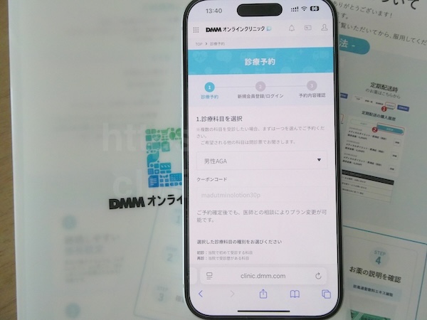DMMクーポンコードの利用④:最新版AGAクーポンコードを適用してDMMオンラインクリニックの予約を完了する