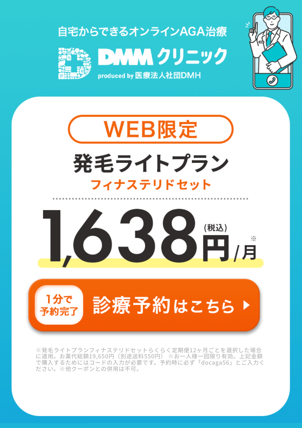 - DMMのAGAクーポン:docaga56(通常料金より56%割引)